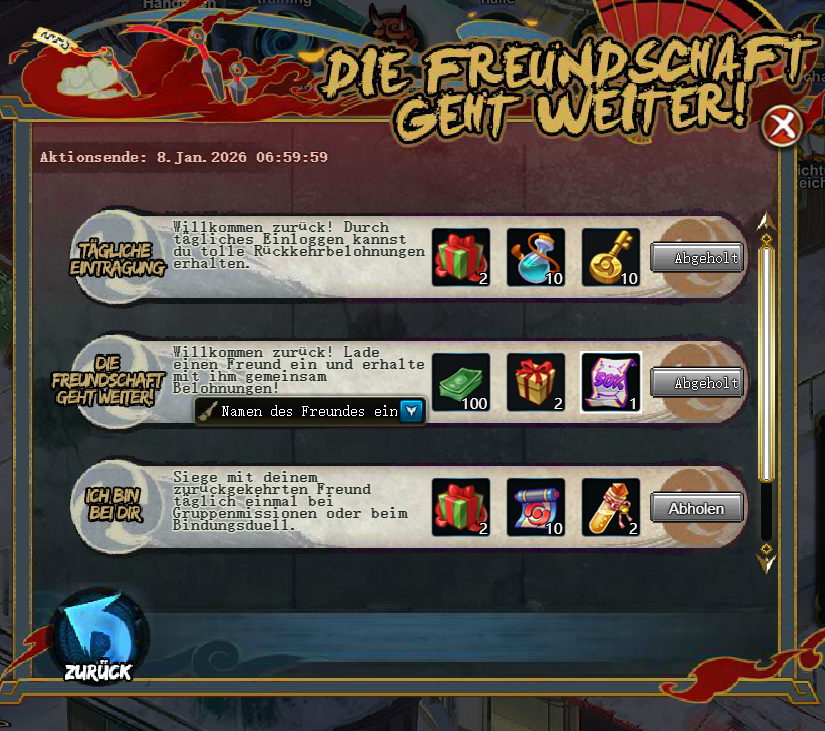 Nach der Abrechnung kannst du nicht mehr an der Aktion teilnehmen und die Rangbelohnungen werden per Nachricht verschickt.