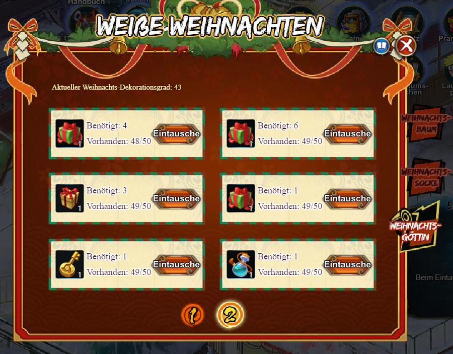 um euch allen ein besseres Spielerlebnis bieten zu können, werden wir am 24.12. eine Serverwartung durchführen. Die Serverwartung findet auf allen Servern statt und startet voraussichtlich gegen 10:30 Uhr. Je nach Umständen könnte die Wartung auch früher oder später erfolgen. Wir werden vor dem Start auch eine Systemnachricht im Spiel schicken. Während dieser Zeit ist der Login ins Spiel nicht möglich. Wir bitten daher um eure Nachsicht.