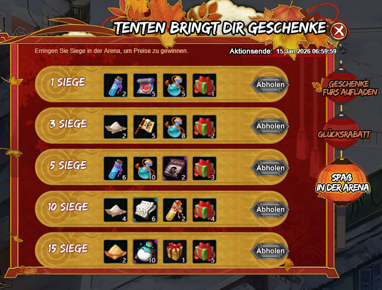"Wenn deine gesamten verbrauchten Goldbarren eine bestimmte Summe erreichen, kannst du eine Belohnung abholen. Während des Aktionszeitraums kann jede Belohnung nur einmal abgeholt werden.
