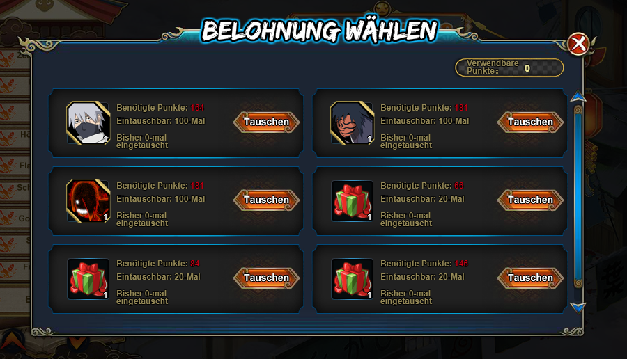 Eintauschbare Gegenstände: