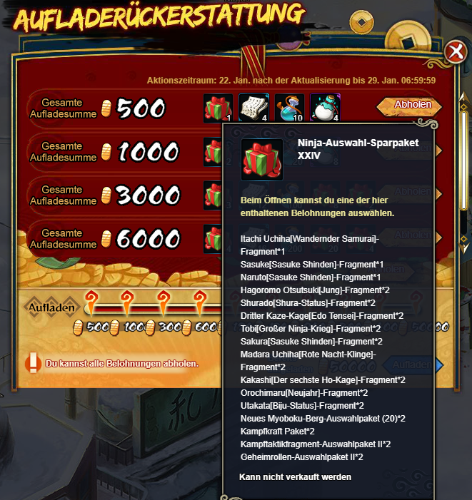 12000Goldbarren: Ninja-Auswahl-Sparpaket XXIV*10, Geheimrolle Unterstüzungspaket*20, Trainingstrank*400, Optionales Gegenstandsaufladepaket*24, 2025 Neues Myoboku-Berg-Auswahlpaket (20)*6