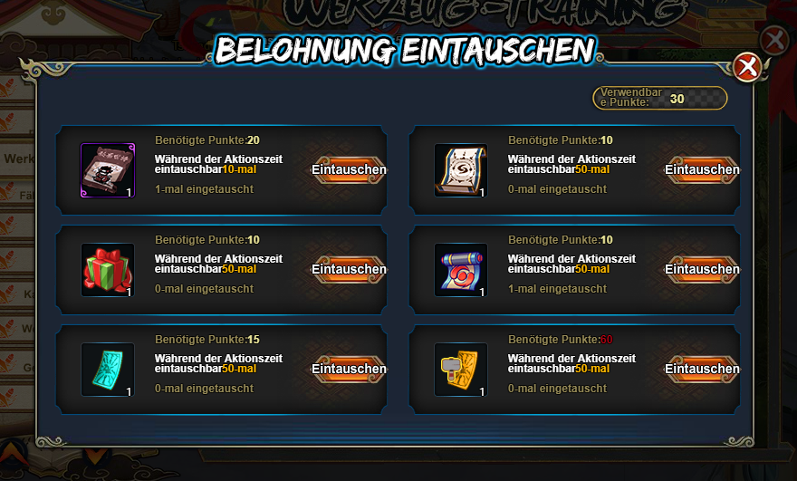 2. Die Herausforderungspunkte können gegen Belohnungen eingetauscht werden.