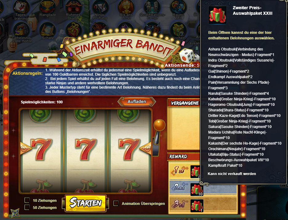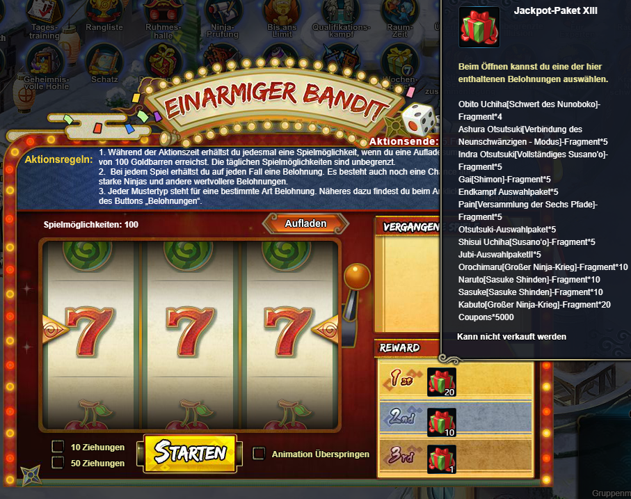 "Jedes Mal, wenn du 100 Goldbarren aufgeladen hast, erhältst du eine Möglichkeit für den einarmigen Banditen.