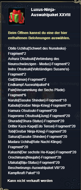 500 Goldbarren (Glückswert*50): Naruto [Sasuke Shinden]-Fragment*1(Limit: 80)