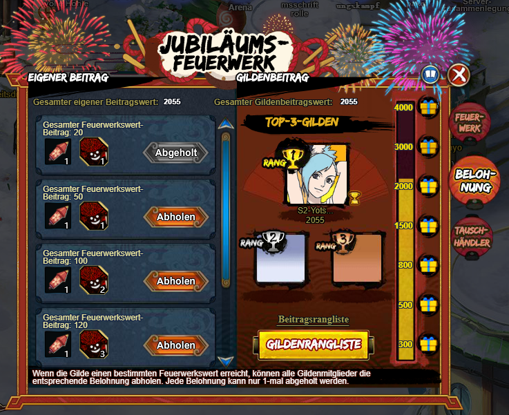 5000m: Feuerwerkpaket*2, Coupons*50, Hohermes Kampfkraftpaket*1"