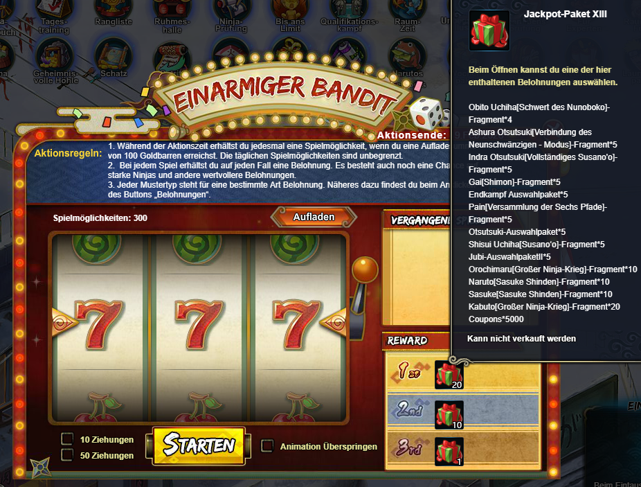 "Jedes Mal, wenn du 100 Goldbarren aufgeladen hast, erhältst du eine Möglichkeit für den einarmigen Banditen.